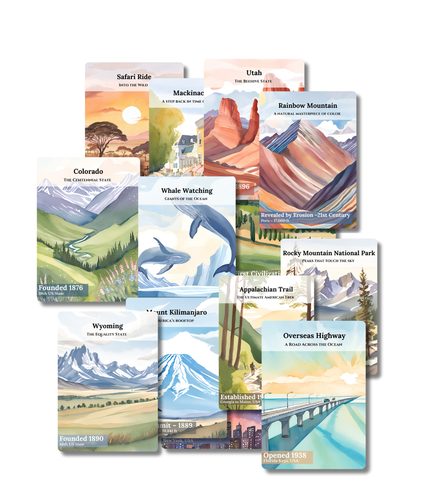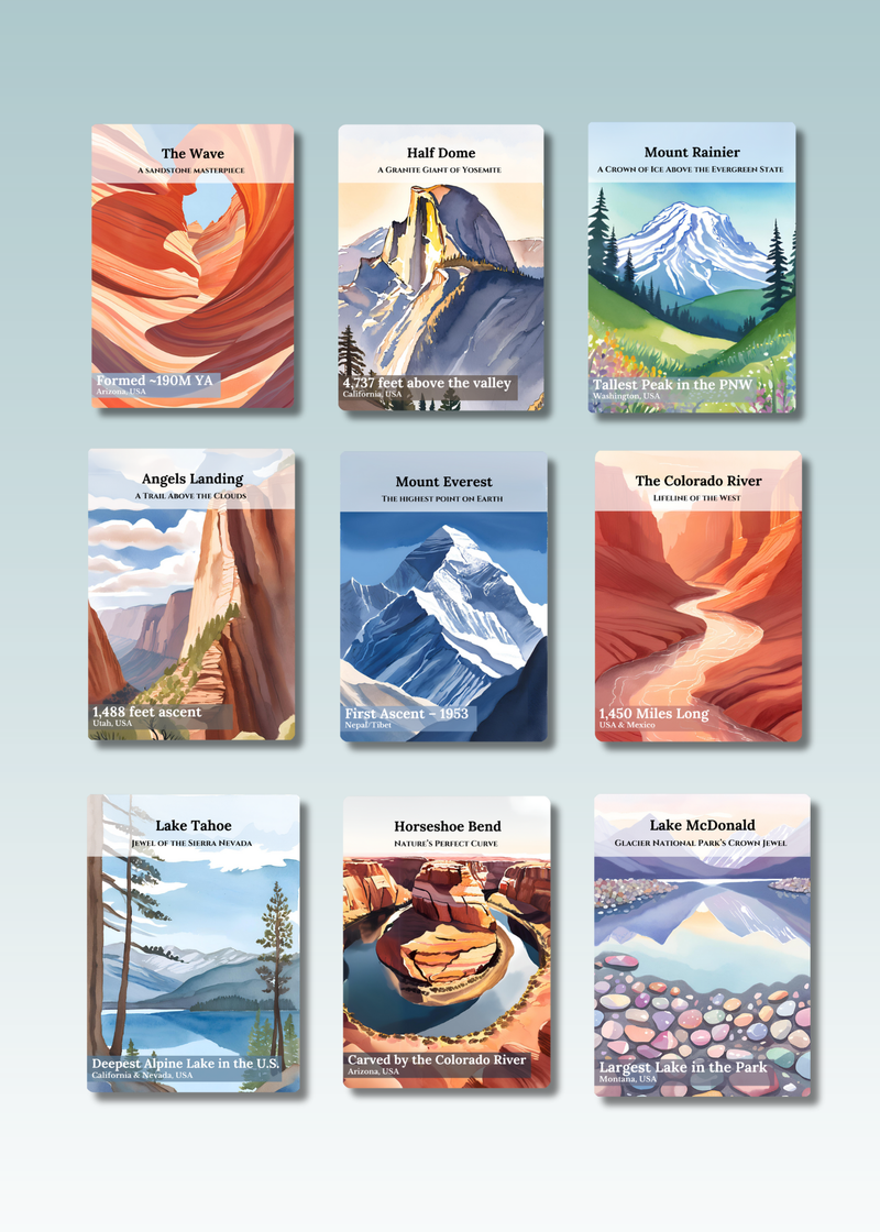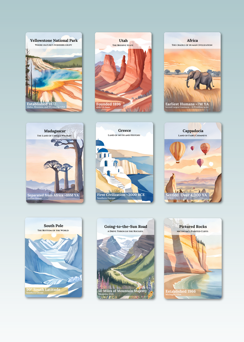 Explore the world, one card at a time. From national parks to iconic cities, each card captures the spirit of must-see destinations and inspires your next adventure.