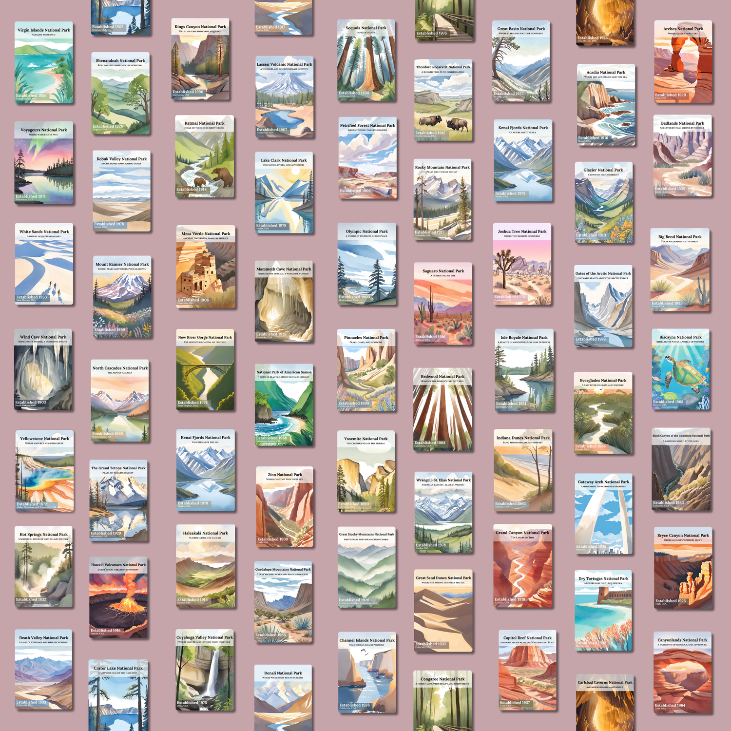 Celebrate America’s wild beauty, one park at a time. From towering peaks to desert canyons, collect cards that honor the nation’s most breathtaking landscapes.