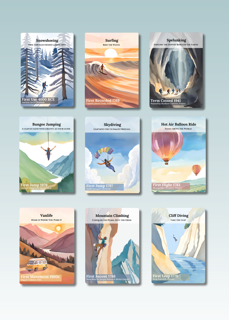 Pick the cards that match your adventures - whether it's a destination you've visited, a challenge you've conquered, or a bucket list goal waiting to happen.